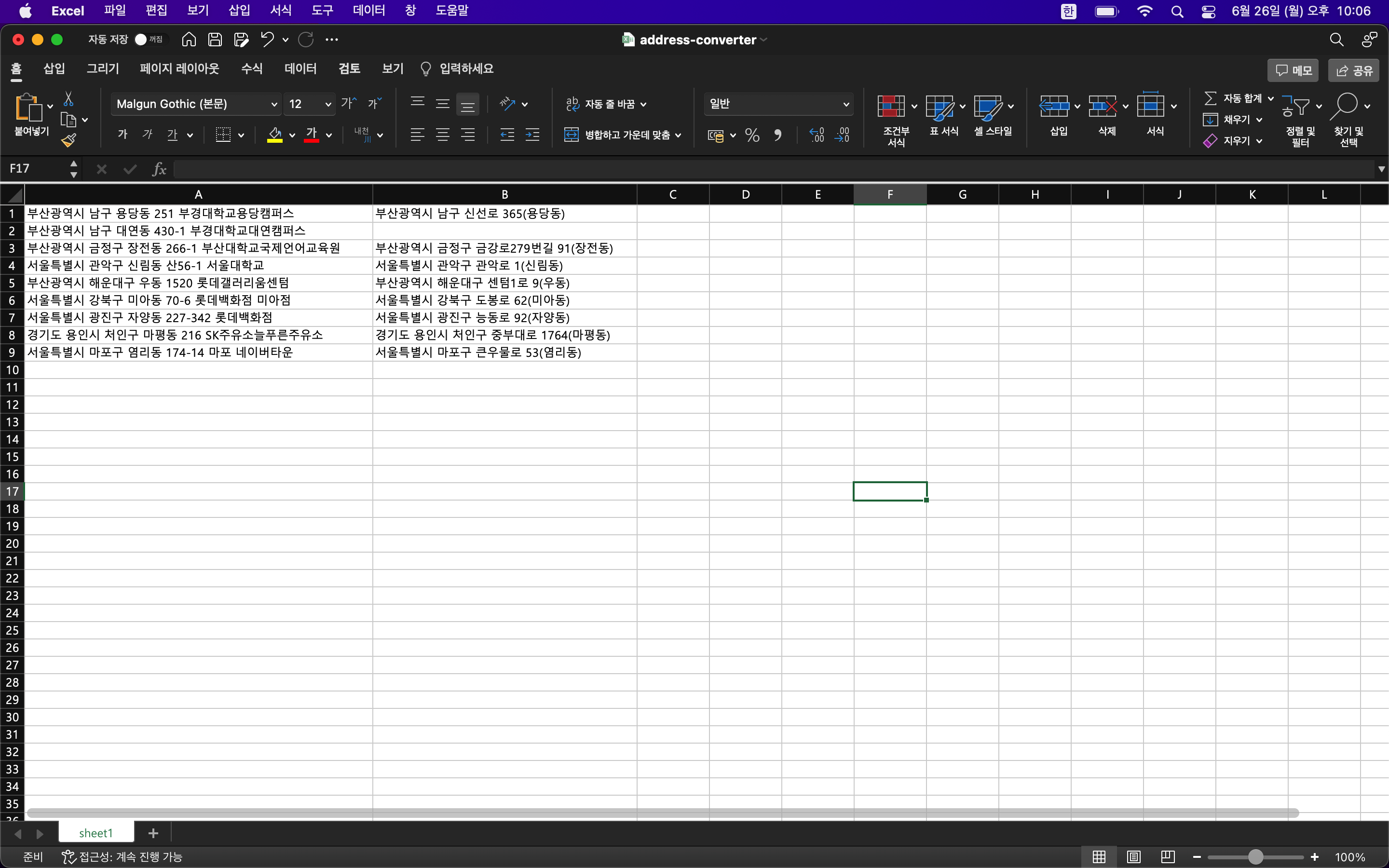 혹시라도 파일이 끝났는데도 안보이면 address-converter.xlsx 파일을 검색해서 이용하면 된다.