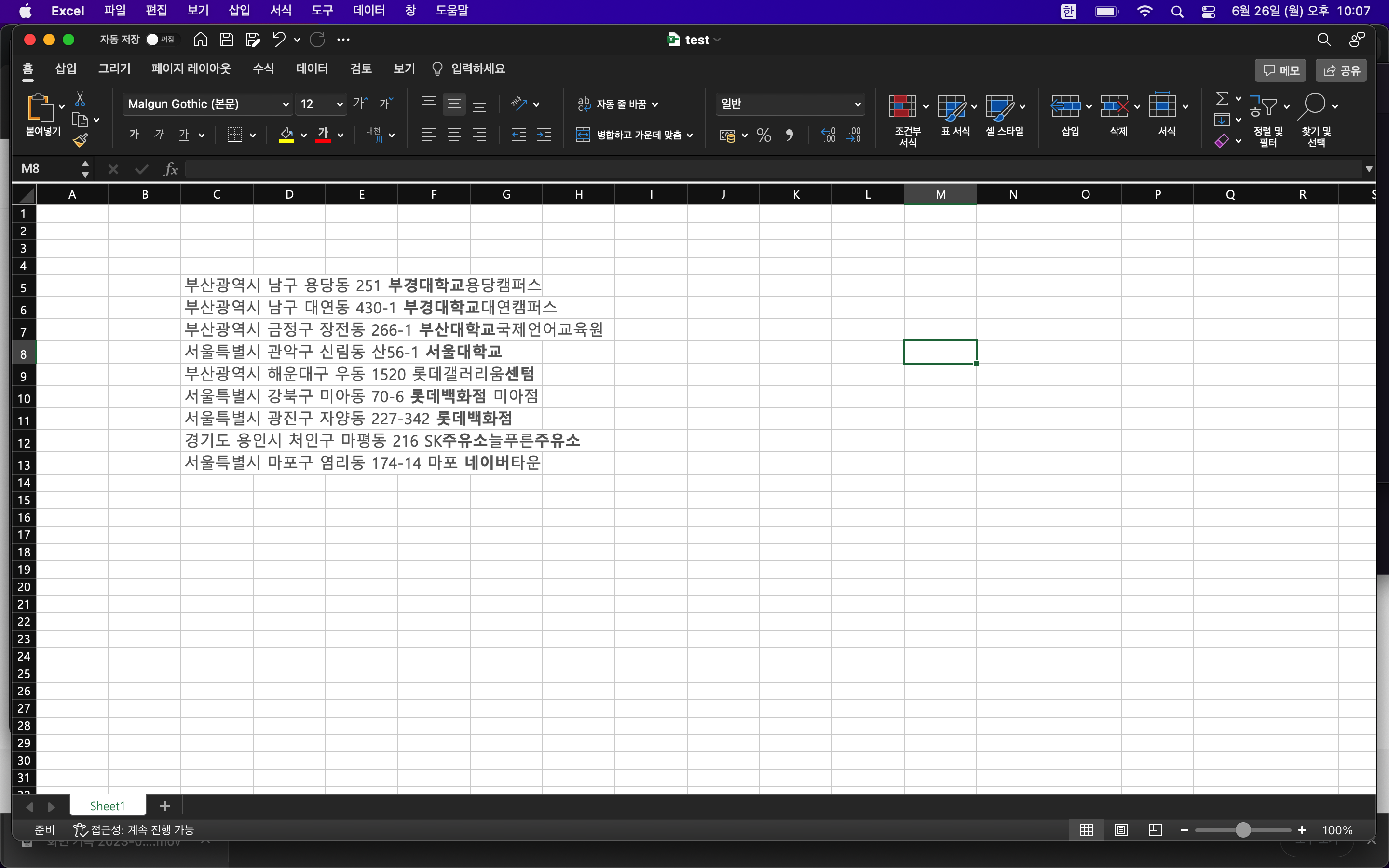 엑셀 파일을 읽어 지번주소를 도로명주소로 변환하는 프로그램을 만들었었다.