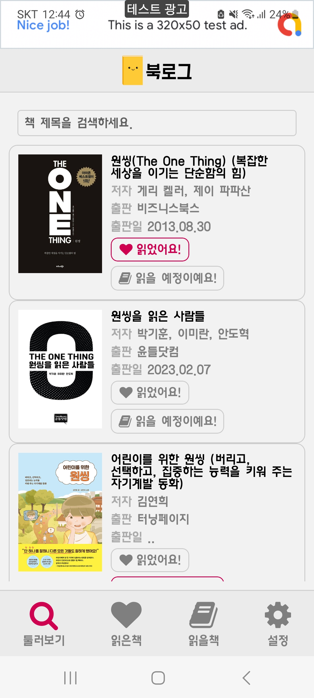 - 읽은 책, 읽을 책 버튼을 클릭 후 한곳에 모아볼 수 있다.