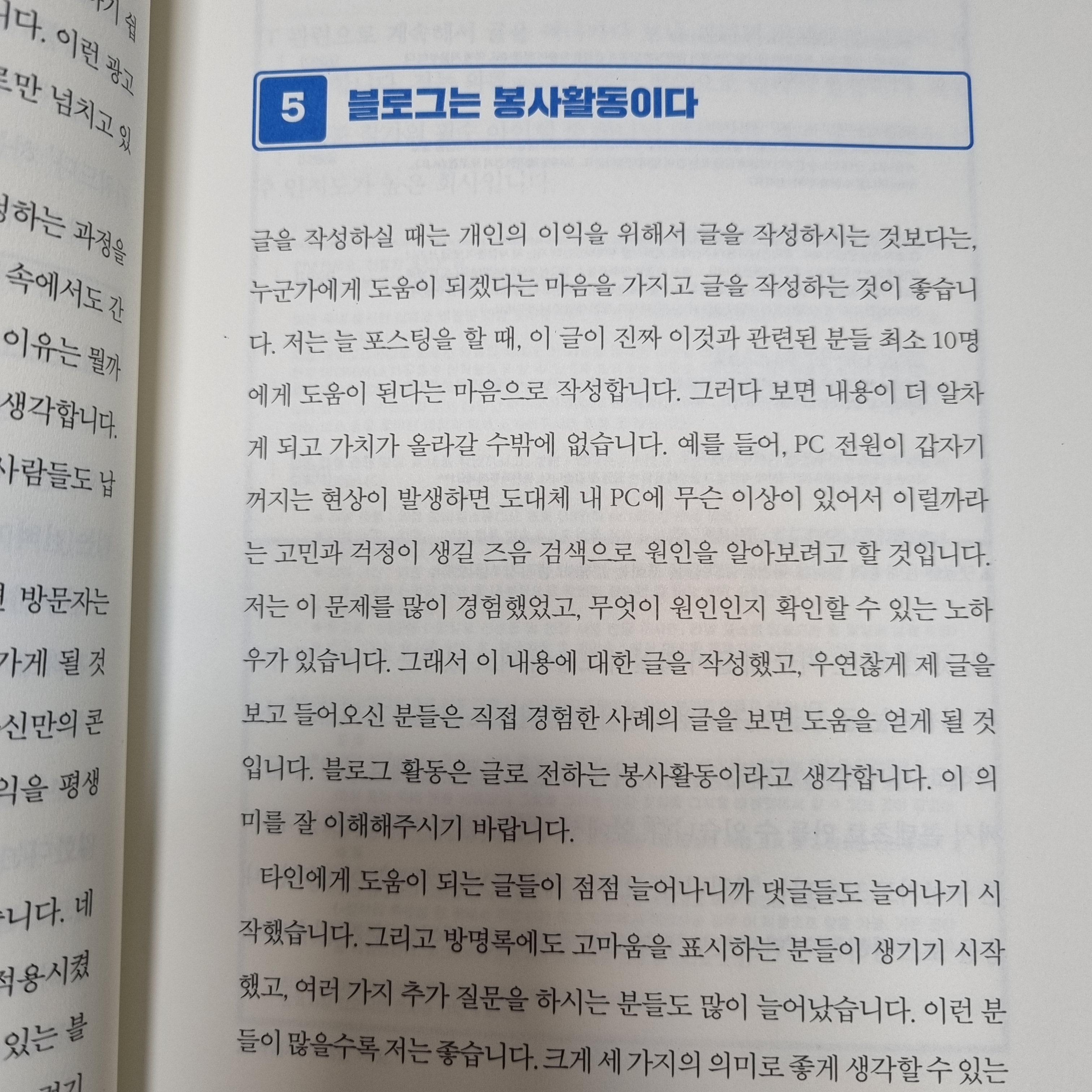 이 책에서 "블로그는 봉사활동이다"라는 말을 한다. 나도 많은 블로거분들에게 도움을 받고 있고 계속 도움을 받을 것 같다.