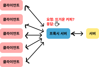 그림과 같이 클라이언트가 바로 서버로 요청을 가지 않고, 프록시 서버를 통해서 서버에게 요청을 하게된다.