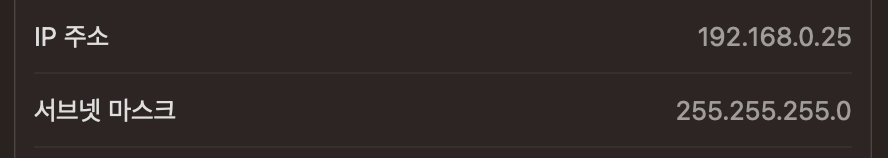위의 예시에서는 192.168.0 이 Network ID 이고 25 가 Host ID 가 된다.