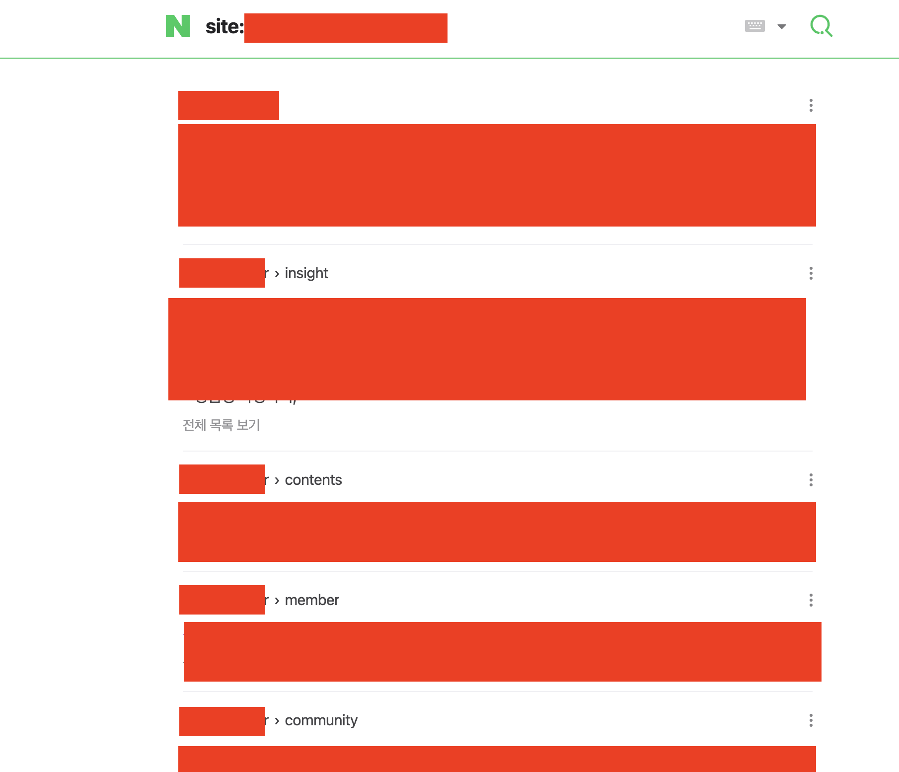 사이트를 공개할 수는 없지만... 보면 라우터가 모두 쪼개져서 검색엔진에 잡히는 것을 볼 수 있다.!