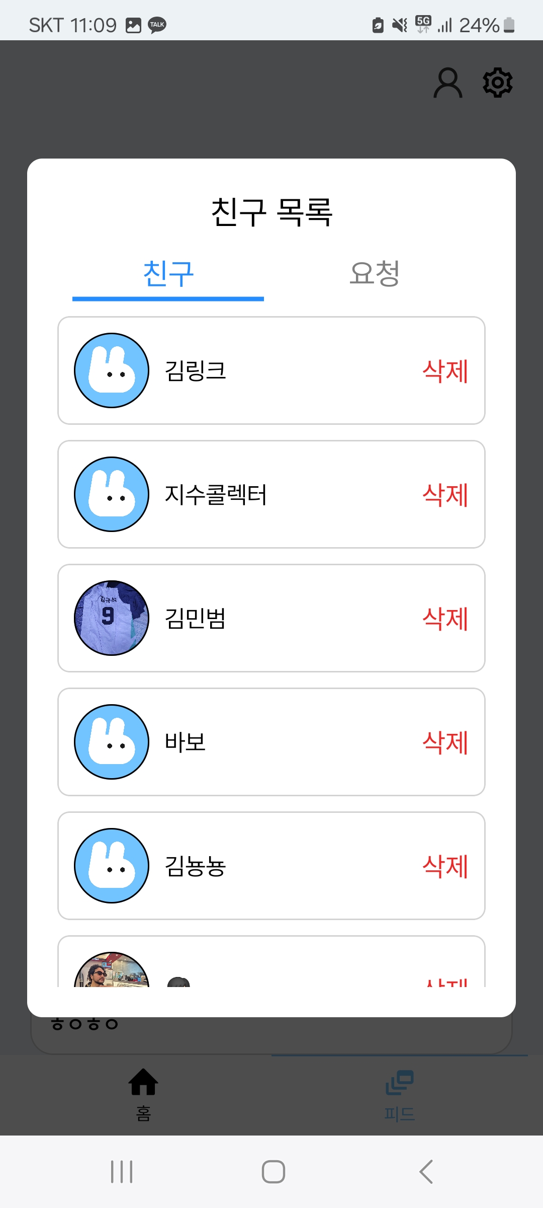 친구 검색이 가능하며, 프로필을 꾸밀수도 있다.