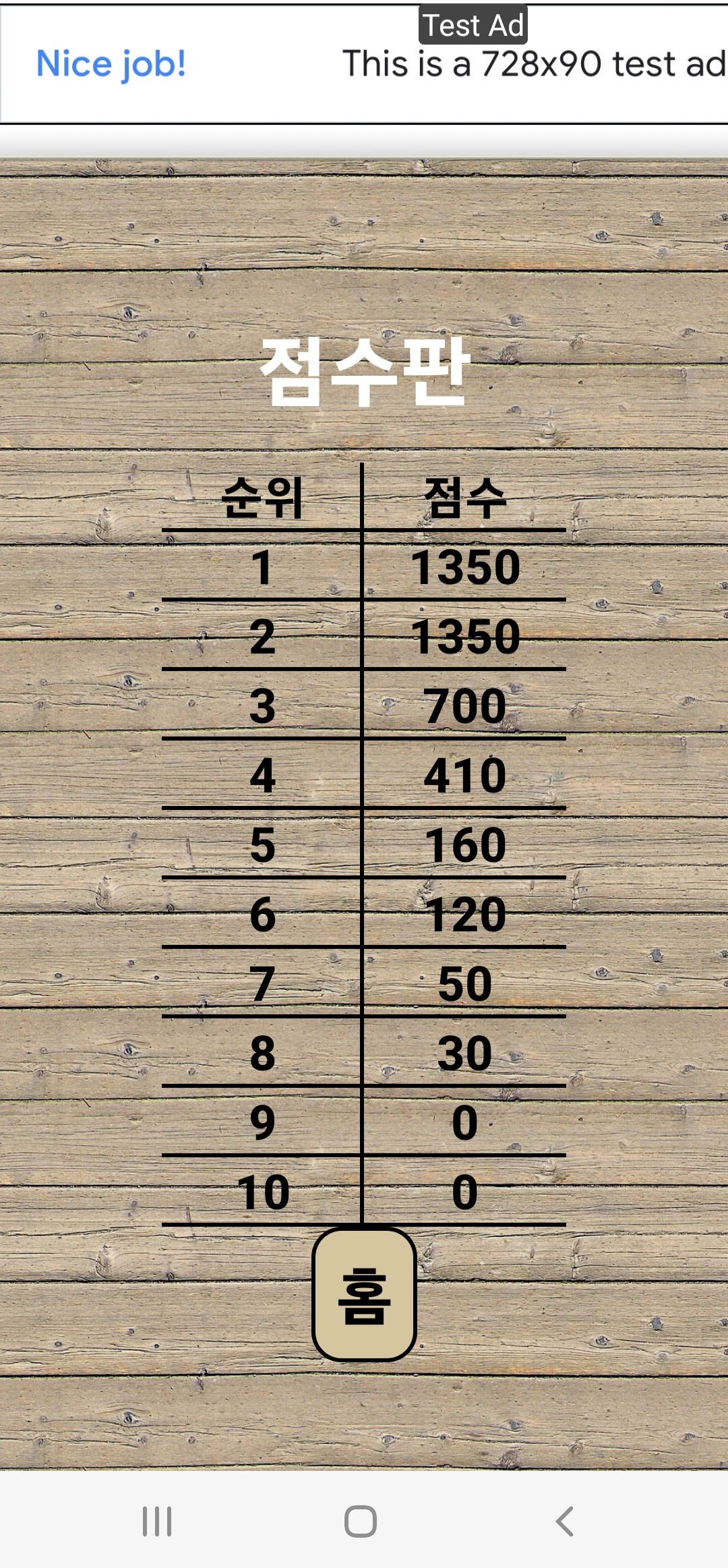광고를 넣을 장소가 마땅치 않아 메인 페이지와 끝날때의 페이지에서만 위에 광고를 넣었다.