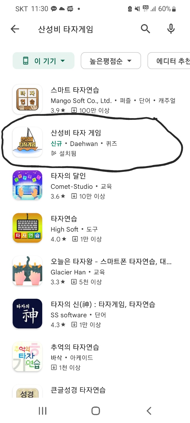 이번에도 산성비 타자게임 이라고 검색하면 두번째에 나온다. 상위 노출이 계속되니까 신기하다...