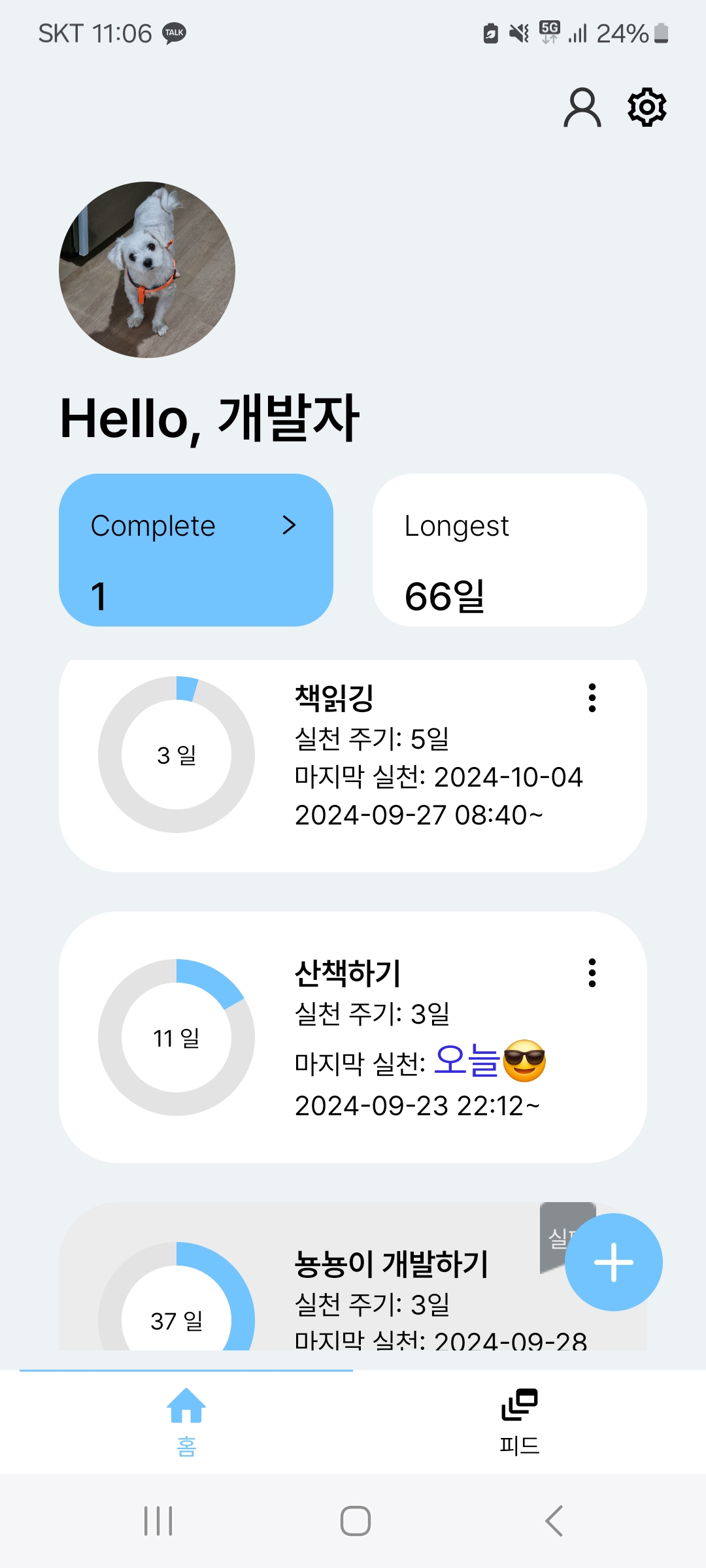 친구를 맺어, 피드에서 친구가 오늘 완료한 습관을 볼 수 있다.