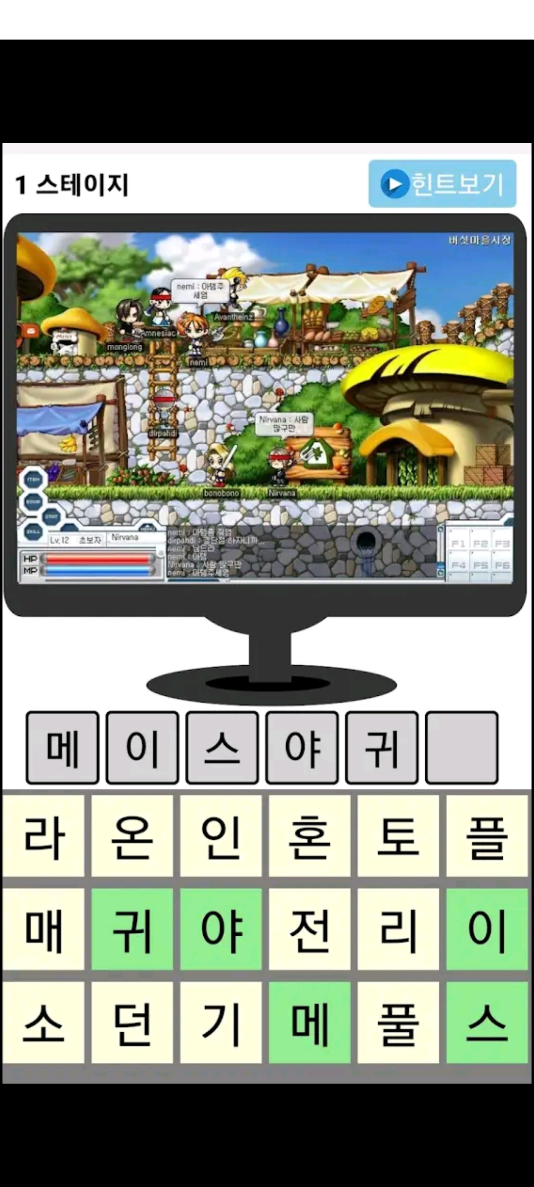 이런 게임이다... 구글광고가 있고 힌트보기를 누르면 30초 동영상 보상형 광고가 나온다.
